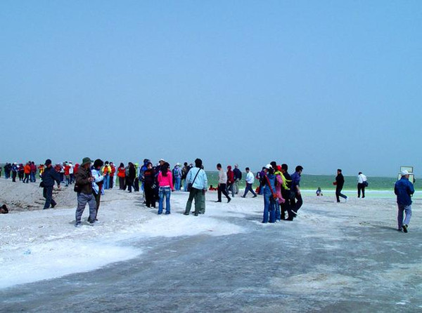 风和日丽时,浩瀚的湖面如同一个巨大的宝镜,放射出银色的光芒,热气腾腾,波光闪烁,真似碧波万顷的海洋。湖中的盐花,晶莹透明,千姿百态,有的像珊瑚、宝塔、花朵,有的似星座、象牙、宝石,令人爱不释手,赞叹不已,被誉为蓝色的花。置身于花丛中,使人遐想无边,仿佛在仙境中漫游。
