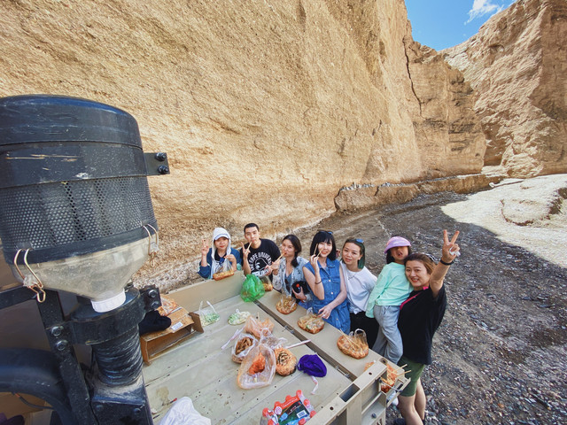 溯溪结束,司机小哥哥拿出事先准备好的凉皮和卤菜,这就是我们的午饭啦。当然吃完后,垃圾也要自己带走,不要留在景区噢。