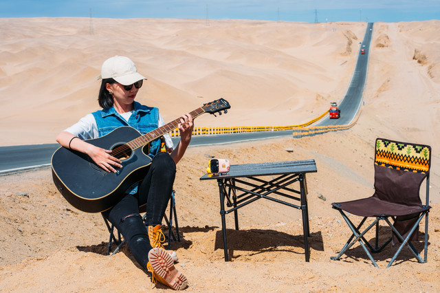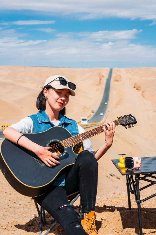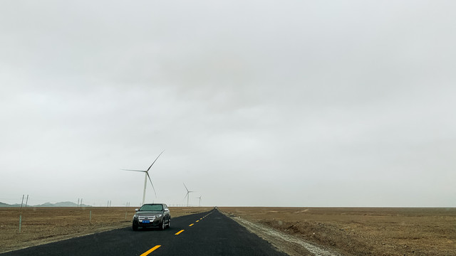 从石油小镇出来,已经是下午两点多,附近没有餐厅,我们决定先吃昨天准备的干粮再一路看看。在戈壁开车跟在城市里真的感觉很不一样,周围一望无际,没什么生机,连遇到的车都很少,却也让每一次遇见都变成惊喜。