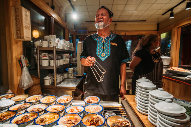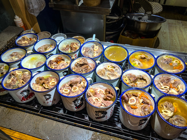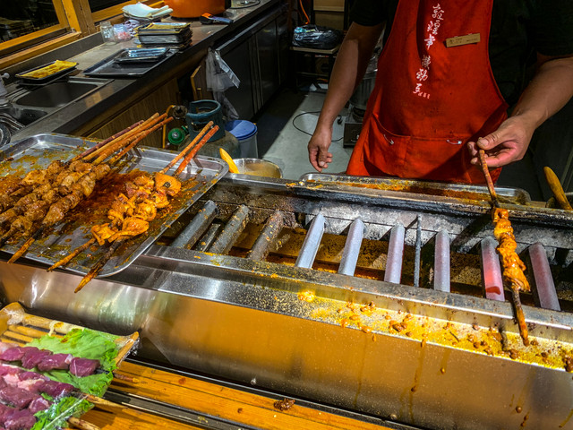 在夜市的中段有一区美食区叫沙洲食驿,这里可以说是融合了西部美味和敦煌特色。有几样是一定要吃的:红柳烤肉(肉是穿在红柳木上烤的)、新疆烤包子、新疆缸子肉、李广记杏皮茶(喝到的最好喝的杏皮茶)、泡儿油糕(敦煌独家特色)!
