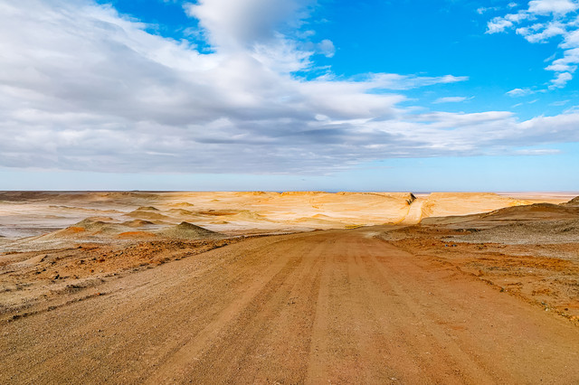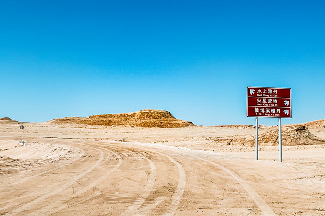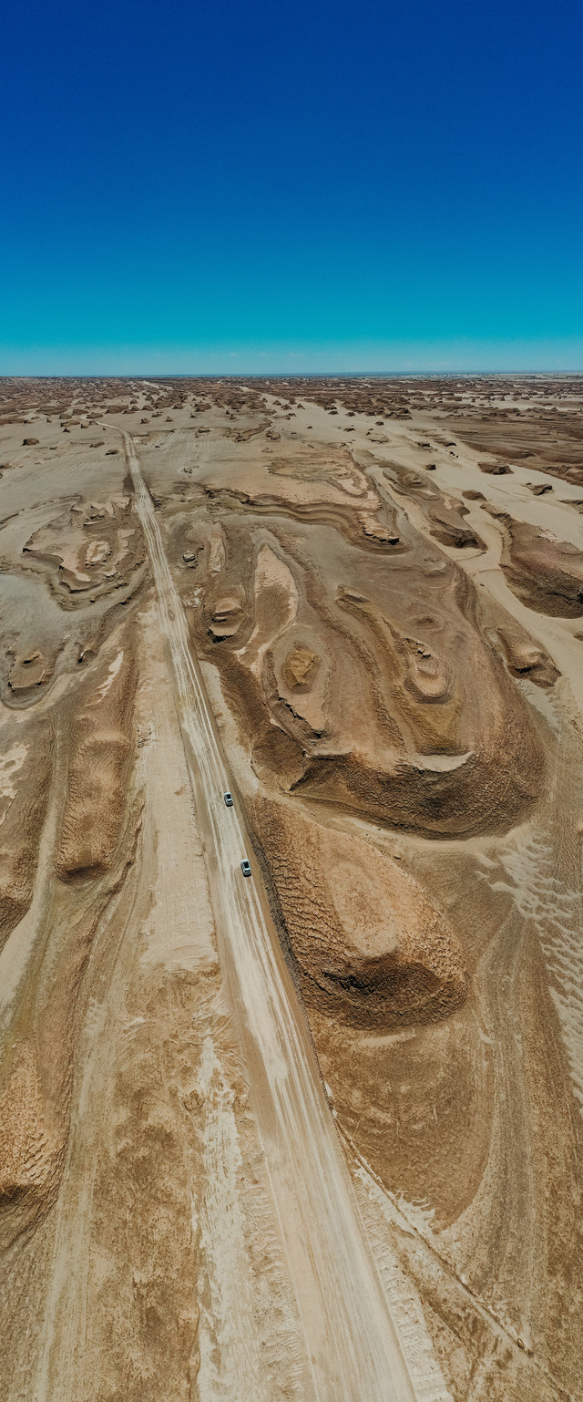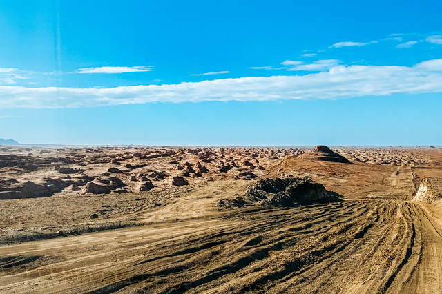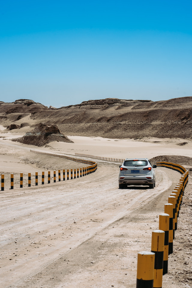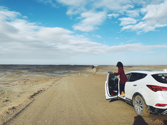 从火星营地到水上雅丹这一段的路真的太美了。晴空万里无云,沿途各式的雅丹应接不暇,我们一扫昨天的阴霾,享受着这大漠里自驾的乐趣。