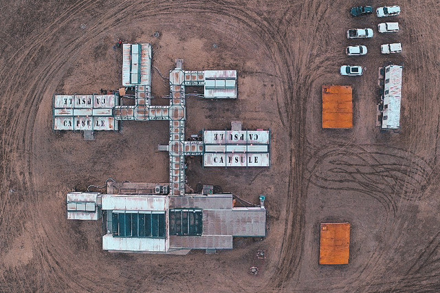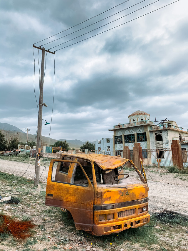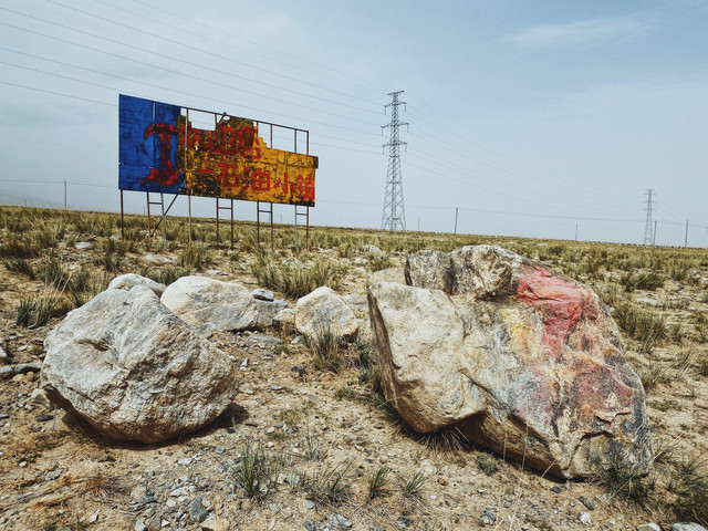 这里比我们想象的还要魔幻得多,插在土里的巴士、废弃堆满杂物的工厂、奇怪的雕塑、破败的楼房,在茫茫戈壁里出现这样的一个小镇,怪异有有趣,爱拍照的小伙伴不可错过。