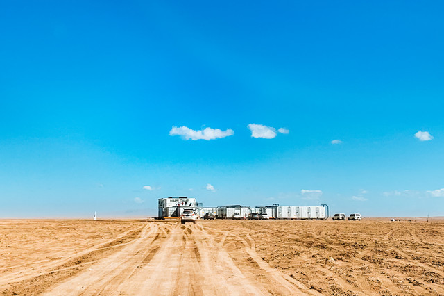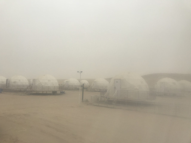 经过三个小时的颠簸路程,我们终于在荒漠里看到了火星营地!!!手机也终于有信号了!!