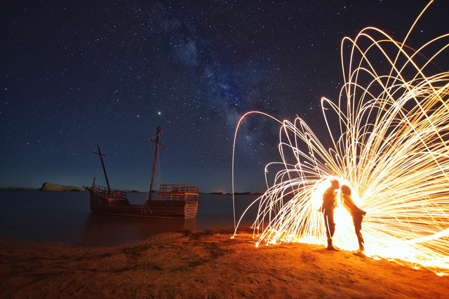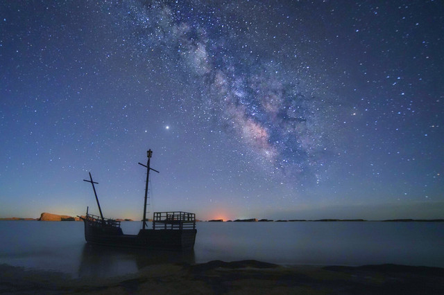 晚上我们走到雅丹边,抬头就是满眼的星空,月亮慢慢落下去之后,银河也越来越清晰,如果抬头看久一点还能发现流星。只是这里的夜晚真的很冷,要穿上长裤和冲锋衣。