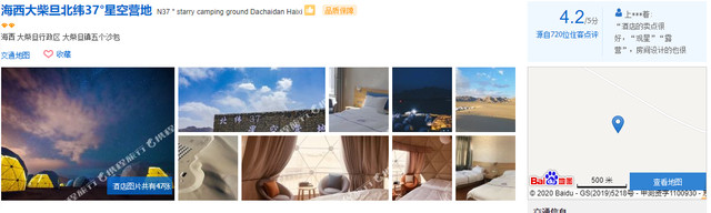 当晚我们入住了海西大柴旦北纬37度星空营地,之前预定的时候看到的网图特别美,但是由于沙尘暴的原因,当晚我们什么也没看到只能早早就睡了。营地就在国道旁边,地理位置很好找,房费包含了早餐。每间房都是一个独立的小帐篷,有一面是透明的可以观景,但是房间内墙都是皮布包着的,有很重的气味,浴室是电热水器,一个人洗完澡后要烧半小时水第二个人才能洗。晚上蚊子也有点多,不能开门。