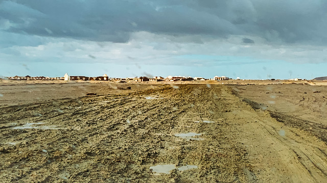 开着开着天慢慢阴了,正常来说这边非常干旱,年降雨量仅300mm左右,然而好巧不巧就让我们遇到了这一年中难得遇到的几场雨。