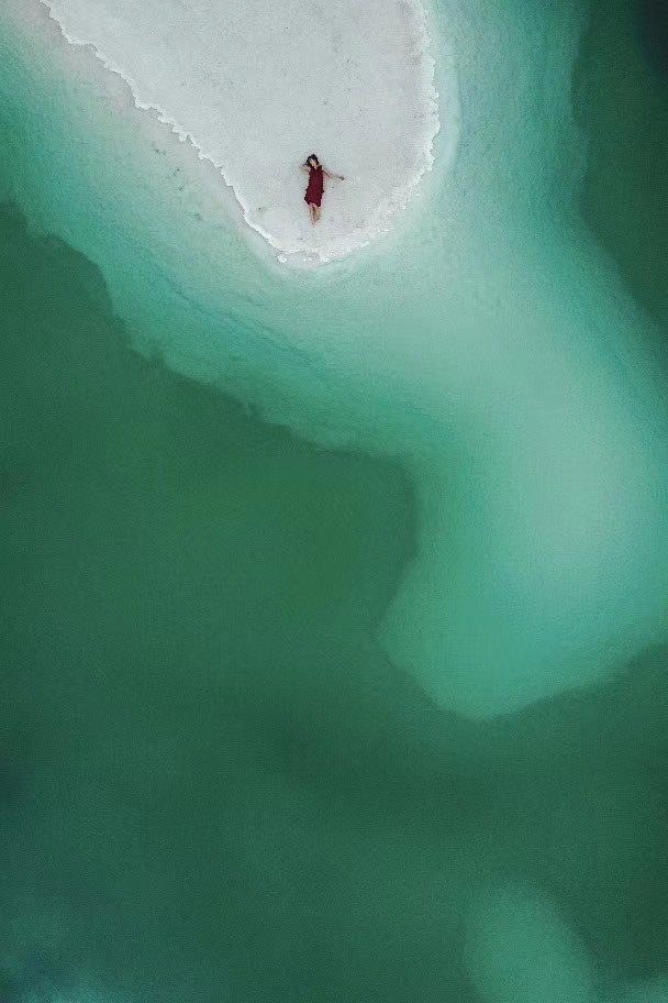 翡翠湖是我们青海自驾的最后一个景点了。景区不用门票,它有很大一片,可以开车去找合适的拍照点。虽然当天早上有沙尘暴,我们看不到远处的山,平地看湖也有些泛白,但是从上帝视角去看,湖的颜色翡翠绿、薄荷蓝、湖边奶白的盐地,简直就是镶嵌在大地上的翡翠,可以想象平时它有多美。