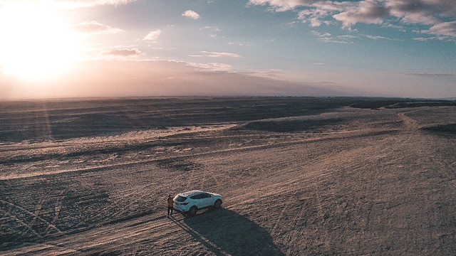 由于一路都在拍拍停停,到察尔汗盐湖的时候已经晚上7点多了,导航显示的路线导到了当地的一个工厂,门卫不让进,说只能坐景区的巴士进去,但是景区已经下班了。无奈只能留下这个遗憾,下次再来了。