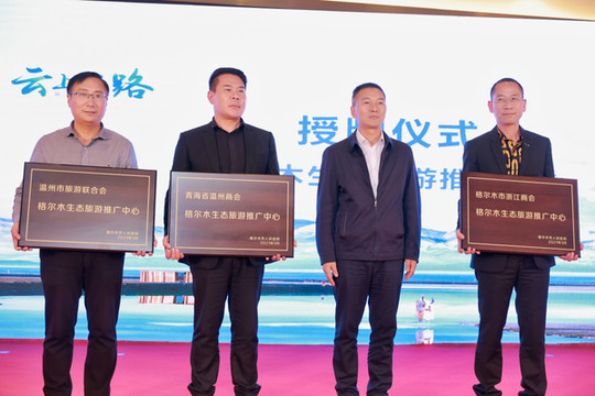 同时,现场授牌设立了海西州生态旅游推广中心、格尔木生态旅游推广中心与格尔木招商办事处。海西州以及格尔木市领导分别为20名在青海海西和格尔木的温州籍企业家授牌海西州文旅推广大使和格尔木文旅推广大使。之后,领导们面对大屏幕,齐齐按下掌印,屏幕上绽放出绚烂的光彩,“万名游客海西行”随之正式启动。