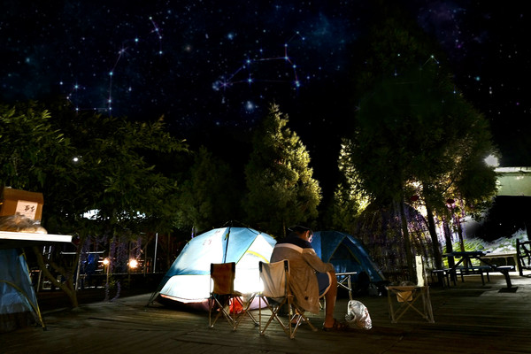 晚上,我们到露营基地这里露营,搭好帐篷后大家围在一起谈天说地,除了我们还有其他游客也在露营,大家在一起观星望月,促膝长谈。这种氛围真的好好,想一直这么待着,三五好友,父母相伴。