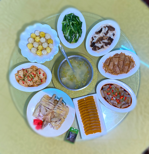 我们商量好是来露营的,所以一下车就直奔景区的山庄吃饭,菜色很丰富很有地方特色,味道也很正宗,白切鸡很美味,河鱼煲用的应该是当地的河鱼味道很鲜,豆腐软糯可口。。。