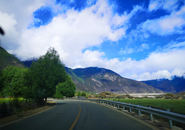 人是铁饭是钢,一点不错。吃饱喝足后的司机同志干咳声消失了。看天,蓝天白云;看山,仍是交叠成峰;路,崎岖蜿蜒;当湛蓝的天空笼罩大地,带着云朵滚滚而来,嗯,山南市人民政府所在地乃东区到了。出行11天,已进入疲劳期,正好在此休整二日,好好逛逛这响当当的山南市。
