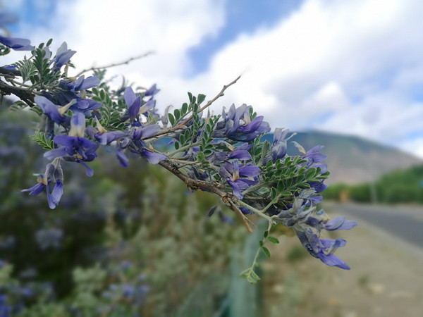 车行一个余小时,司机同志该休息了,我则四处溜达着,哦,路边的野花茂盛极了,有几种花卉是这里常见的,想着为我这脑袋塞入点花卉知识,于是赶紧拍下这些艳丽的花朵,回来百度一下,蓝色的花卉为砂生槐,产于西藏,别名狼牙刺、金雀花、刺树,另一种似倒挂金钟的粉色小花,度娘的答案,我未认可,看来有必要买本植物书以参照学习了。