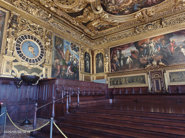 整个房间长53米,宽25米,不仅仅是整个总督宫最大最壮观的房间,也是整个欧洲最大的房间,是威尼斯共和国议会举行议会的地方。拥有世界上最长的布面油画——《Paradiso》
