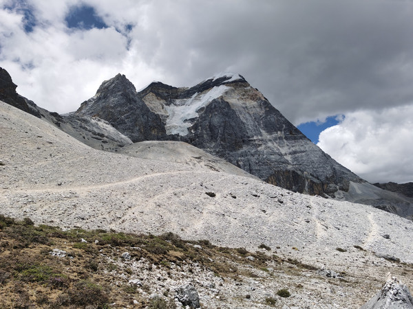 绕过了几个山脊,终于看见了松洛垭口,这也是最高最难翻的垭口,看着陡峭的路,虽内心有些恐惧,不过我想到了黄春生的“加油,奥利给”,我瞬间信心满满,于是我放起音乐,一路没有休息,不停地翻垭口。