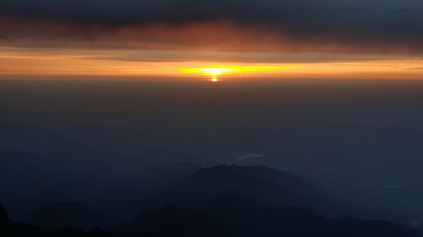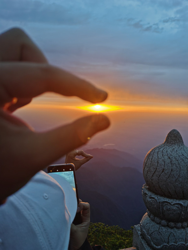 早上3点钟起来冲顶金顶,我一个人打着手电走夜路,看着天空中没有星星,我有点失望,今天看到日出的几率不大了!