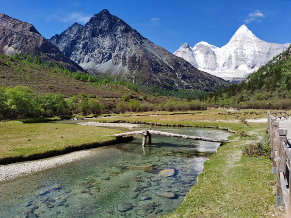 河流清澈见底,比琉璃还要纯净,雪山倒影在河里,加上美丽动人的草甸,简直就是世外桃源,不愧是“蓝色星球上的最后一片净土啊!”