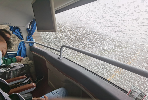 早上六点整,汽车发车,我坐的是层半客车,而且是一号座位(C位),可以观赏到全景。