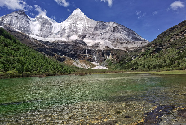 进入景区后,景区大巴沿着山路缓缓而行。忽然,一座雪山呈现在我眼前,那就是仙乃日!
