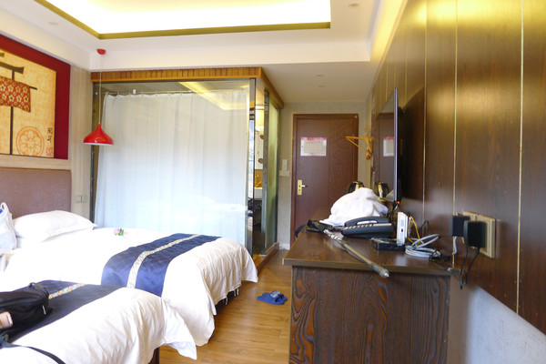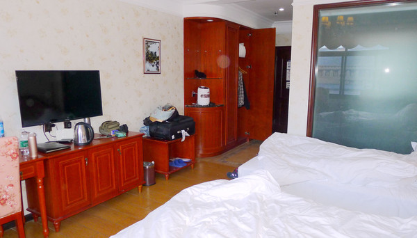 返回房间,稍微休息了片刻,20:00在宾馆一楼大餐厅吃晚饭,要了两碗牛肉面和一份西红柿炒鸡蛋。牛肉面40元/碗,虽然有点儿小贵,但内中的牛肉蛮多。晚上我已躺在床上,一位女服务员敲门进来为我们测定“血氧饱和度”,我是79.98%,属中度缺氧,昕捷是稍高于78%。亚丁村的海拔是3900米,比西藏拉萨还要高出200米,房间内有付费吸氧服务,我们都说不需要。