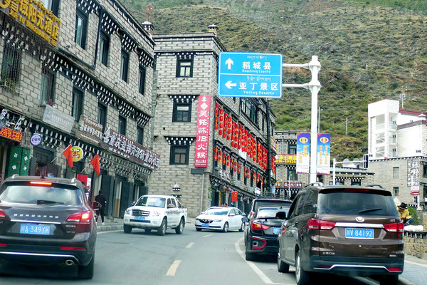 饭后回宾馆,将准备带入亚丁的物品整理成两个双肩背包,其他行李全部放入汽车,8:18退房、出发,8:31驶抵亚丁景区游客中心停车场。景区停车场就跟大城市商业中心的停车场一样,分为地下好几层,此刻空位颇多,我们很快就停好了车。