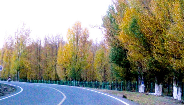 19:00看到路边有漂亮的秋叶,随即驶经“青杨林”观景台,我们在台下右拐,进入稻城县城(金珠镇),19:10抵达“圣地映像酒店”入住。房间让我很满意,还有加湿器,晚餐X.J.说免了,我有一包薯条拿来配茶水,也就够了。