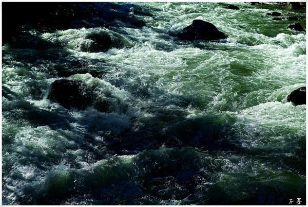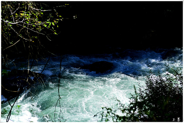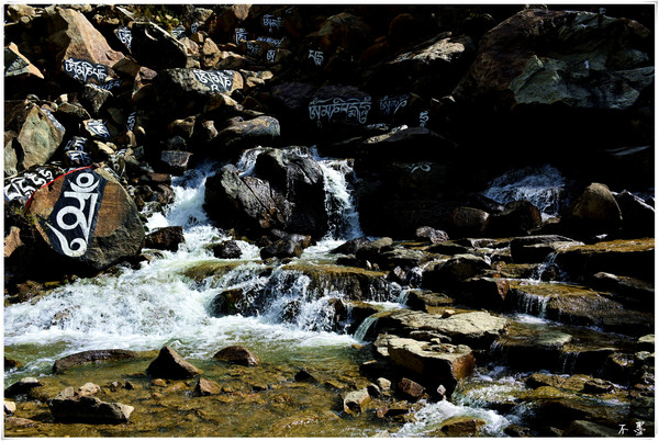 河谷中的石头很多刻有经文,被称为玛尼石。河水流过石头,经文随河水流淌,仿佛流水声成了诵经声,河流也就成了一条流淌着佛音、经文的河流。