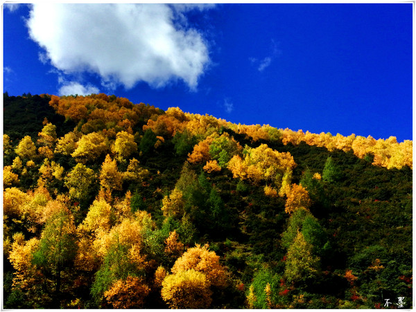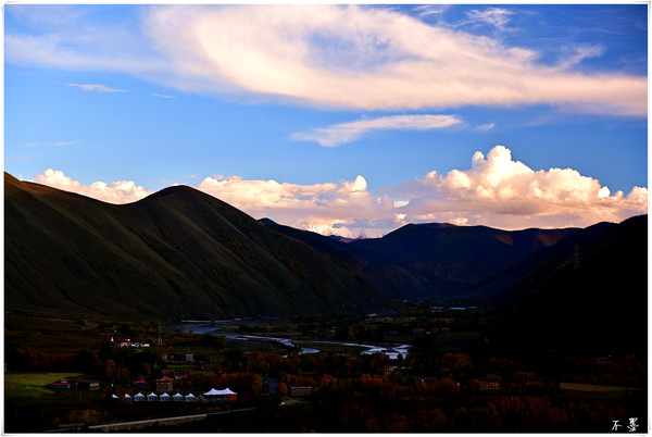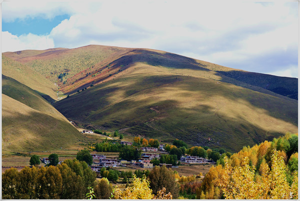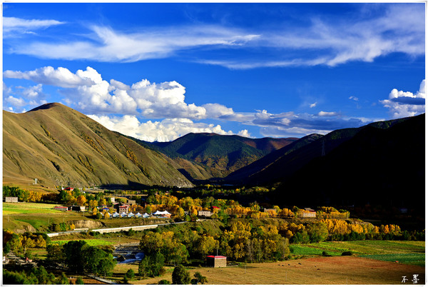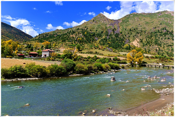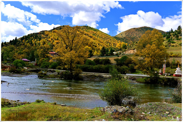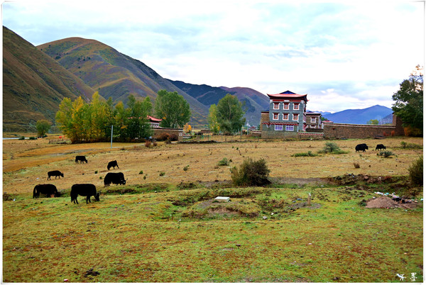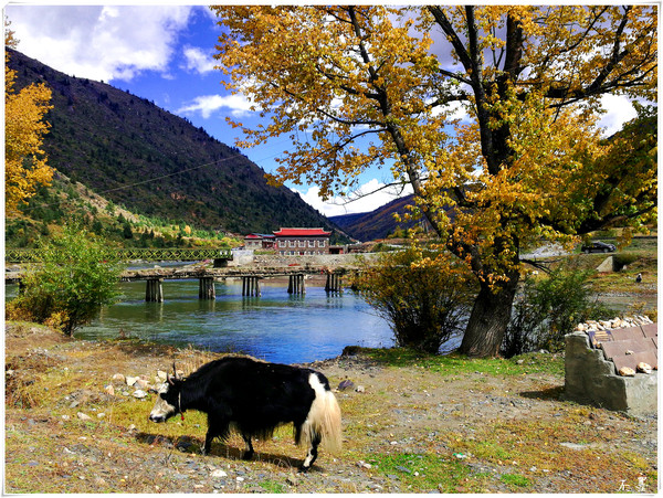 白的塔、红的房;蓝的天、黄的树;悠闲的牦牛、安静的河流,这是光与影的世界、这是新都桥的初秋。