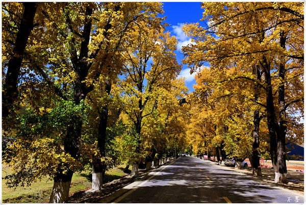 虽只是初秋,路边的柏杨树已是满身金黄,景观长廊变身金色大道。