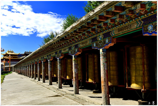 环绕玛尼堆,随信众沿寺外的转经筒长廊转动经筒,告别塔公寺。