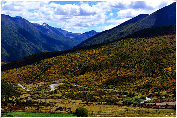 Day18(2019,10,11):9.06——16.13,木拉乡、藏乡秋色(半岛村)、河谷牧场观景台、日照神山观景台、打郎鼓牧场观景台、七彩林观景台、东旺河、色匆村、色冲大桥、毛屋隧道、定曲河、得荣旺达大酒店(4070公里)。17,40——19.10,得荣县城、晚餐。