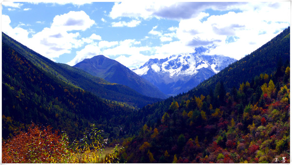 离开河谷地段,皑皑雪山近在眼前。这是雅拉雪山,熊猫大道有岔口可通景区,路边的观景台看雪山位置极佳。