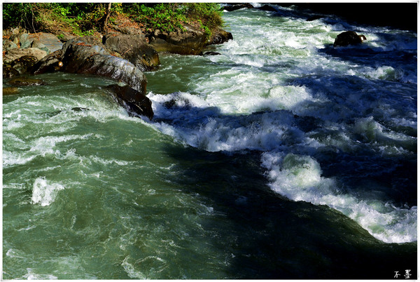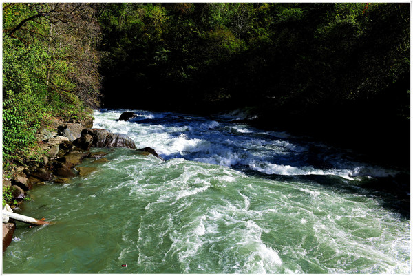 东谷河水流奔涌、浪花飞溅,两岸山高林密,峡谷幽深静寂,一切如天然盆景般,又恍若来到世外桃源。