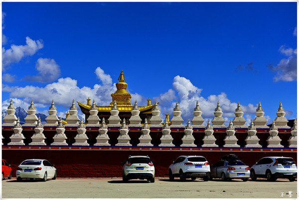Day16(2019,10,9):8.00——10.00,稻城县城。10.00——13.00,傍河、雄登寺。13.30——16.40,多格朗珠、尊胜塔林、俄落村、热乌寺、波巩山、赤土河谷、贡嘎朗吉哈寺、中堆村、香格里拉镇、贡金莲日酒店(3826公里)。18.20——20.30,香格里拉镇、晚餐。
