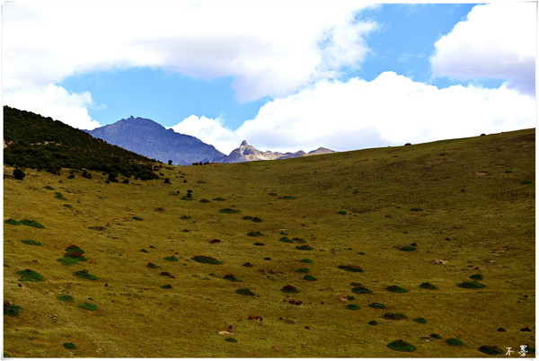 眼前的景致和熊猫大道的山谷风貌不同,草原风光渐显。