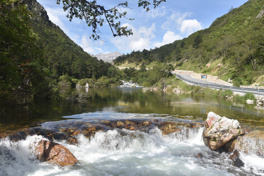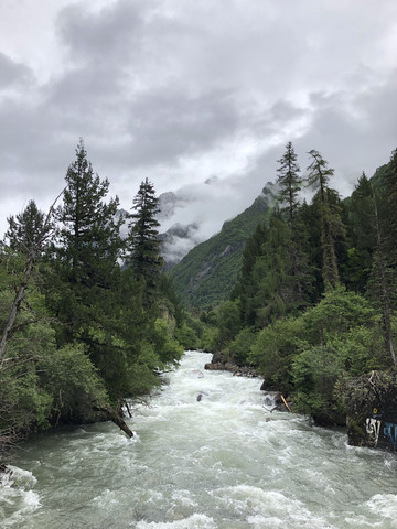 参观完熊猫基地,出来时我们咨询检票口的帅哥附近当地人吃饭的餐馆,他介绍了镇上的刘三哥鸿运酒楼,从基地出来转到350国道,往四姑娘山方向前行约150米就到。果然是不错的餐馆,有当地人在吃喜宴,我们点了酸菜肘子,泡椒牛肉和青菜,味道非常好,价格实惠。离开餐馆我们沿熊猫大道往四姑娘山方向前进,海拔不断提升,一路上坡。沿途两边都是高山,山脚水流喘急,山上绿树成荫。翻山越岭和经过隧道,我们下午四点多到达四姑娘山长坪村的酒店。办理入住后我们在附近找了间餐馆吃晚饭后回酒店休息。