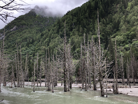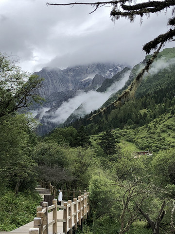 四姑娘山位于阿坝州小金县日隆镇境内,由4座长年积雪覆盖的山峰组成,犹如头批白纱妆容俊俏的四位少女,依次屹立在长坪沟和海子沟两条银河之上,最高峰幺妹峰海拔6250米。从观光车下来,进入栈道,沿长坪沟的水流逆水而上,沿途经过虫虫脚瀑布,枯树滩,沿途欣赏水流、瀑布、原始森林和雪山。全程需要5~6小时,景区内没有餐馆也没有小卖部。我们备了干粮和水,休息时可以补充能量和水。有点遗憾的是雪山一直有雾,姑娘们害羞始终带着面纱,未能让我们一睹芳容。下午2点多我们结束游玩,坐观光车到酒店门口下车,晚上在酒店餐厅就餐,食物是野生菌鸡肉火锅。