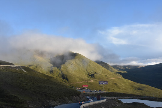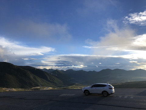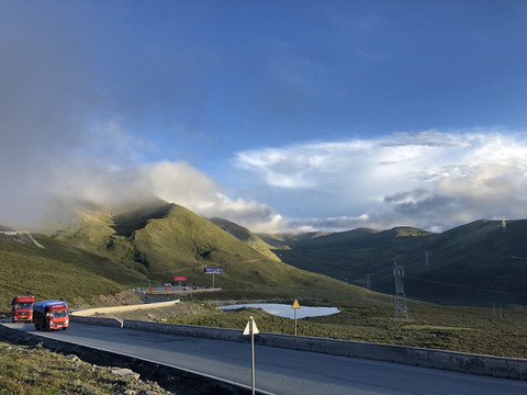 接下来的行程本来是沿国道350经丹巴到道孚县的八美镇,沿途可以远观四姑娘山和亚拉雪山、藏寨等漂亮景点。设置导航时发现小金的350国道由于塌方不能行走,需要绕道351到雅安,经康定再到道孚,提前走国道318,全程约330公里,需要9小时50分钟。离开长坪村,在双桥沟转351国道,途径夹金山森林公园和红军长征翻过的第一座雪山夹金山。沿途有很多处塌方,其中一次等施工清理等了约30分钟,快到夹金山海拔4114米的母亚山口时有一处塌方比较严重,在这里等了2个多小时。翻过山口后经宝兴县到雅安上高速,到康定已经是下午五点多。上到折多山观景平台已经是黄昏,有幸看到黄昏的漂亮景色。然后专心赶路,经夜色迷人的新都桥,塔公镇。在晚上九点多到达酒店。晚餐是烧烤和抄手。