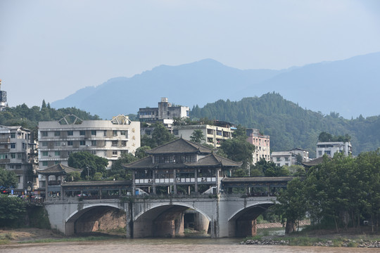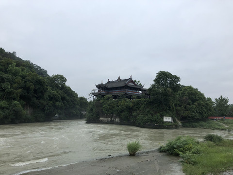 从成都到都江堰,全程高速,开车只需要1小时多一些。我们从广州出发,早上8点多的航班,将近11点到达成都双流机场,然后直接到租车公司门店取车,取车后马上出发去都江堰。7月份是成都的雨季,从成都到都江堰一直下着小雨,能见度不是很好。还好到都江堰后没有雨,阴天,观景和拍照就有些模糊。到达都江堰后,我们先到酒店停好车并放下行李,然后在酒店附近的面馆吃中午饭。我们订的酒店就在景区的古城内,附近很多餐馆,吃饭非常方便。
