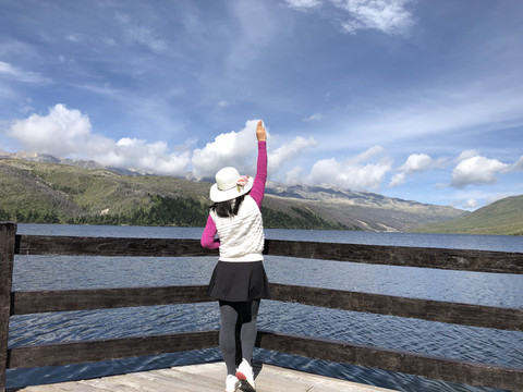 第二天特别早起,吃完早餐在上班前离开康定市区去木格措风景区。康定市位于四川省甘孜藏族自治州东部,是甘孜州州府。康定具有悠久灿烂的历史文化,是川藏咽喉。市区坐落在大山之间的山沟上,地方有限,停车位少,道路拥挤。所以我们需要在上班高峰前离开市区以节省路上的时间。从酒店到木格措景区约20公里,开车约30分钟。我们8点多到达景区售票处,在售票大厅购买观光车票。这时游人不多,可以将车直接停放在售票厅门口,非常方便。康定是广东江门对口援建的地区,所以景区对广东户籍游客门票有优惠。