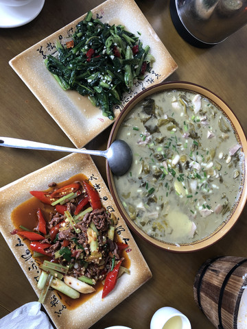 吃:帽菜、酸菜肘子、野生菌、牦牛肉、雅鱼、冰粉。