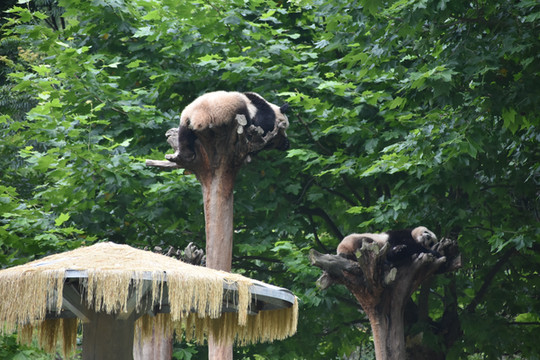 熊猫基地分大熊猫饲养繁育参观区、圈养大熊猫野化培训区和野外放归区,还有熊猫博物馆。我们可以参观的是繁育参观区和博物馆。这里熊猫很多,由于我们到达时间已经接近11点,很多熊猫已经吃完睡觉,部分还在吃竹子和吃草。无论是在吃的和睡的,宝宝们的萌态都非常吸引人。