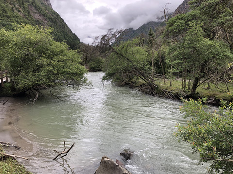 四姑娘山有三条沟:双桥沟、长坪沟和海子沟。双桥沟的景色是最美的,但是双桥沟景区内的道路在6月27日被大水冲坏了,关闭了还没有开放,我们只好选择去长坪沟。我们的酒店刚好就在长坪沟口的长坪村,离长坪沟售票处只有约300米的距离。我们为何会选择长坪村的酒店?原因是这里的低势比双桥沟的开阔,方便停车,酒店比较多;另外我们也担心雨天的泥石流,安全起见都找一些位于开阔地带的酒店。
