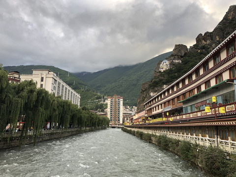 第二天早上在酒店餐厅吃完早餐出发,经过半小时左右的车程,从都汶高速下来就是映秀镇。映秀在2008年的地震中受损非常严重,所有的房屋基本上被震塌为平地,保留了损坏比较轻微的璇口中学作为震中遗址。遗址免费参观并有专人讲解。非常高兴看到的是经广东东莞援建的新的映秀镇,道路规划得好,街道整洁,房子很漂亮,有小庭院,种满花草。很多房子开了民宿,供游客住和玩。