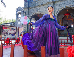 景区内的洞窟最早是开凿于公元5世纪,最晚14世纪,其中,尤以10至11世纪最为鼎盛,当年的高昌国回鹘国王抛弃摩尼教,皈依佛教,将此处扩建为皇家佛寺。然而,公元15世纪以后,当地民众又改奉伊斯兰教,佛教寺院随之荒废。20世纪初,再有欧洲“探险家”前来,将幸存之壁画装运成数百箱偷运出境。因而,现时的“柏孜克里克”除洞窟尚存以外,文物其实并无多少。转了一圈感觉没啥可看,悻悻之余正打算撤离,突见正有盛装的外地游客与一位当地维族老人互动,父亲跟女儿在维族老人伴奏下跳舞,母亲拍摄视频。其他游客纷纷“揩油”,我也乘机拍了几张。