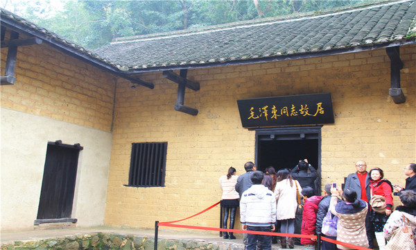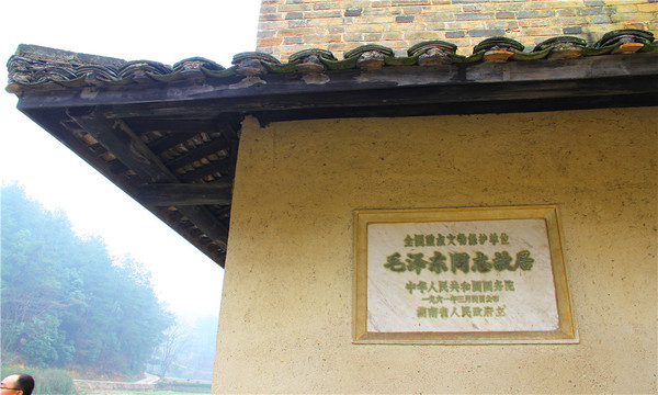 韶山是毛泽东同志故居,系土木结构的凹字型建筑,东边是毛泽东家,西边是邻居,中间堂屋两家共用。