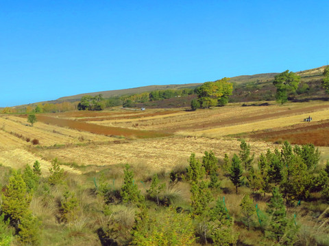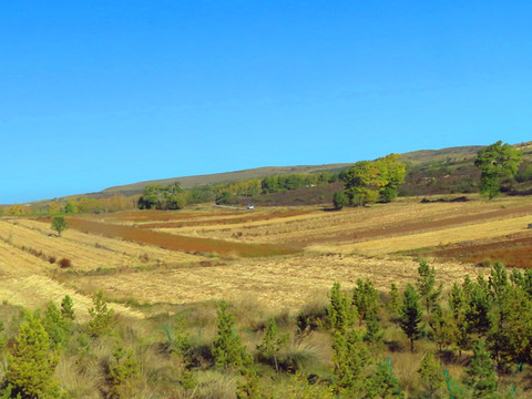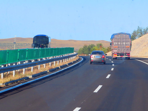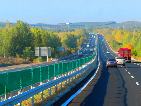 美丽的风景在路上,秋天把大地染成了五彩斑斓的色块,绿色的树木,金黄的成熟的庄稼,红色的房屋,高速公路镶嵌在其中,丰富的色彩冲击着我们的视觉。