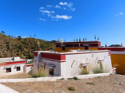 我们直奔五当召。蒙古语“五当”意为“柳树”;原名巴达嘎尔召,藏语“巴达嘎尔”意为“白莲花”,始建于清康熙年间(公元1662年—1722),乾隆十四年(公元1749年)重修,赐汉名广觉寺。第一世活佛罗布桑加拉措以西藏扎什伦布寺(这里我去过,难怪看着有点眼熟)为蓝本兴建,经过康熙、乾隆、嘉庆、道光、光绪年间的多次扩建,逐步扩大至今日规模。因建在五当沟的一座叫做敖包山的山坡上,所以通称其名为五当召。