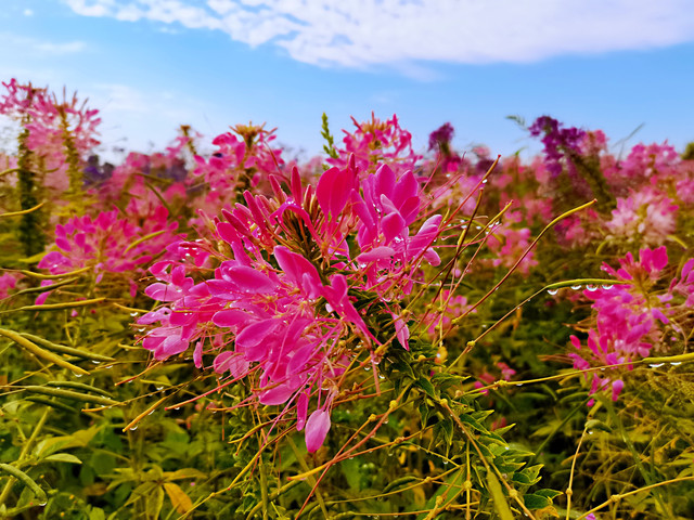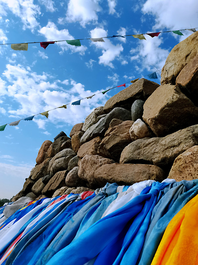 敖包是祈福圣地,如果心中有信仰,可以在敖包祈福许愿,我一直相信心诚则灵。在敖包的正对面是一个广场和一片花海,广场上相当热闹,有翩翩起舞的广场舞团,还有类似于公益组织在做活动,生活气息非常浓厚。穿过广场就是一片花海,花海里面聚集了拍照打卡的姑娘和阿姨们,一张张笑脸和花儿交相辉映,顿时间满满的幸福感。