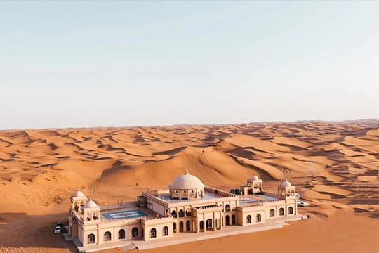 沙漠绿洲湖水集一体的七星湖